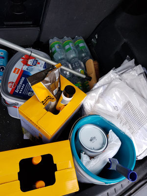 Okay zugegebenermaßen musste ich die Zutatenliste etwas anpassen. Ich habe nämlich nur 1 Eimer für 6 Helfer und 4 Zimmer + Flur eingekauft *lach*